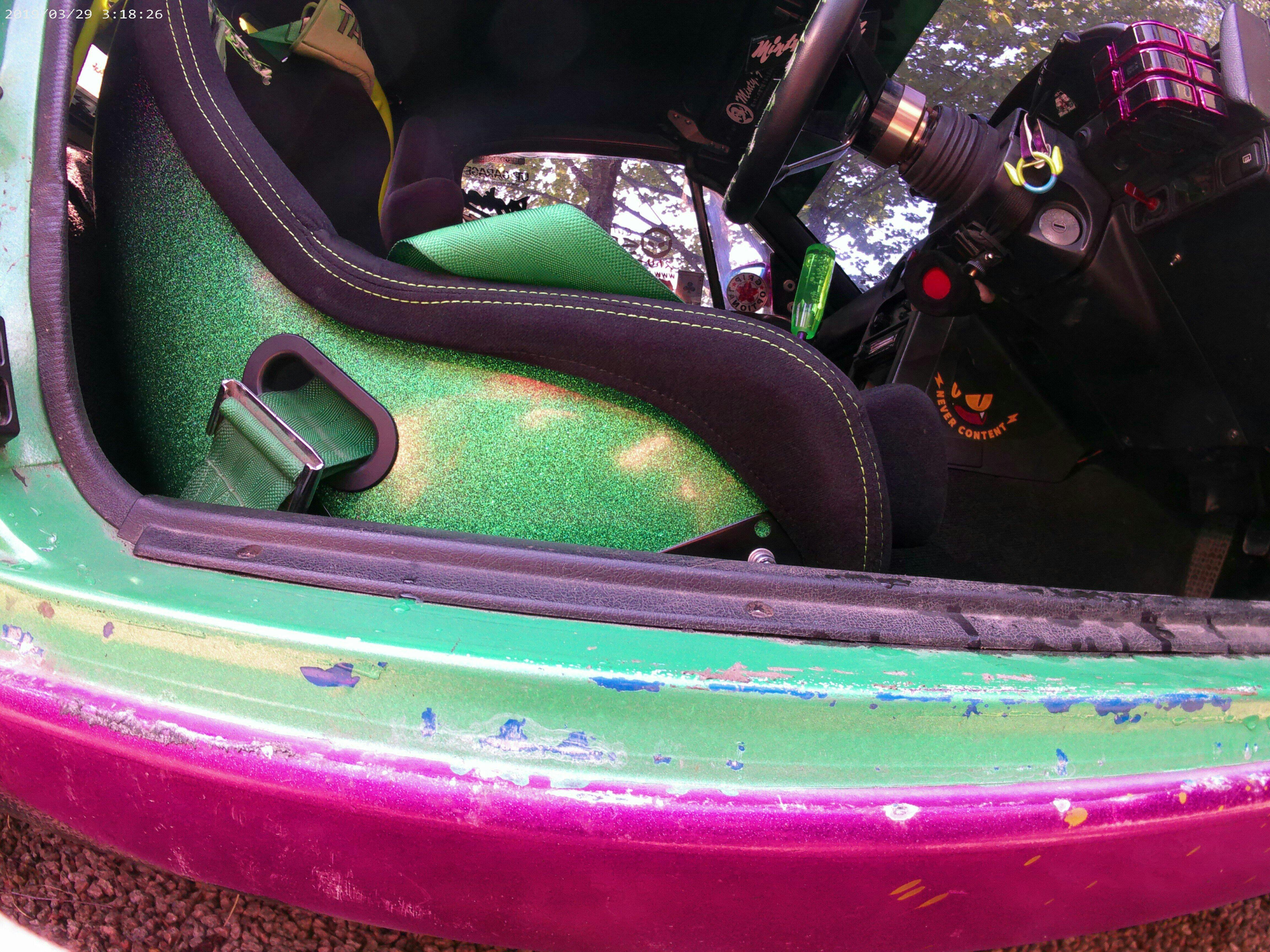 A long planned out product which we are proud to finally release to the world. Well.. The UK for now! Our Super lightweight / strong FRP built Fixed Bucket Seat. Trimmed in Black with double Green stitching. Sporting a Green to Purple sparkle gradient rear fade. Ultra crisp. Will be well suited to the newest and classic of Drift Builds.